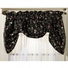 Ellis Curtain Kitchen Collection Cherries Lined Tie-Up Valance-We've designed our Kitchen Collection Line with three things in mind. To have beautiful printed patterns, be machine washable and inexpensive. The Cherries Collection is an elegant pattern of cherries, vines, leaves and floral blossoms on a solid background that will reflect the atmosphere, mood and theme that you are looking to create in your kitchen. Made from 70-percent polyester/30-percent cotton creates a sturdy valance that is extremely durable and will hold its color and shape even after repeated washings. The Tie-up is a one piece lined valance with two strap ties sewn into the 3-Inch rod pocket for easy hanging. It Measures 58-Inch wide and length is measured overall 26-Inch from header top to bottom of panel. For wider windows simply add multiple valances together. The Tie-Up Valance can be combined with coordinating ruffled tailored tier curtains, ruffled swags, valances and 3-piece lined swag curtains that are all available thru Amazon. Conveniently machine washable, Made in the USA,You will not be disappointed with Ellis Curtain Kitchen Collection Cherries Lined Tie-Up Valance, Black
